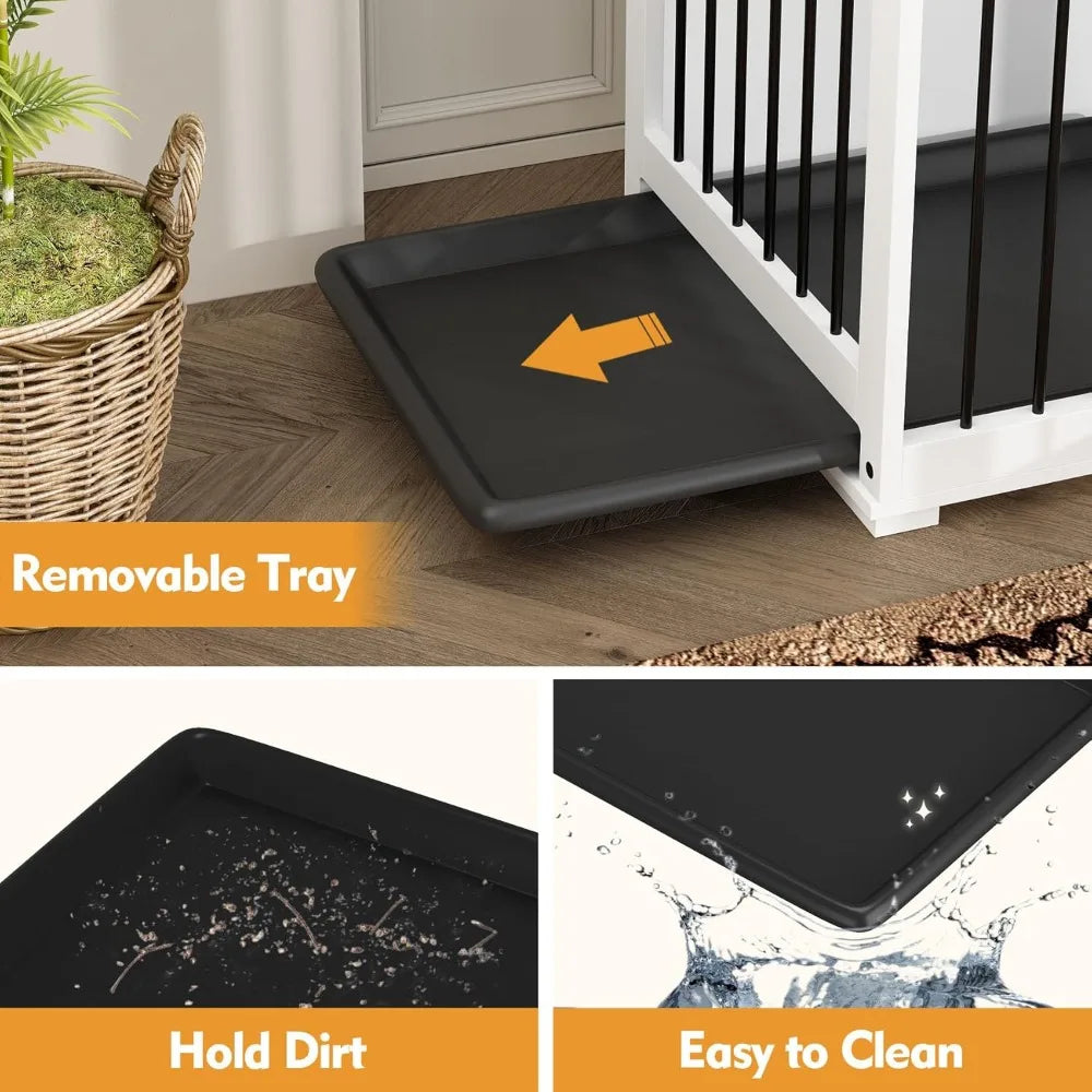 - 【DOUBLE TRAYS】The dog cage is specially equipped with 2 removable dog trays, which can collect dog hair and daily small garbage, making it convenient for you to dump and clean at any time.