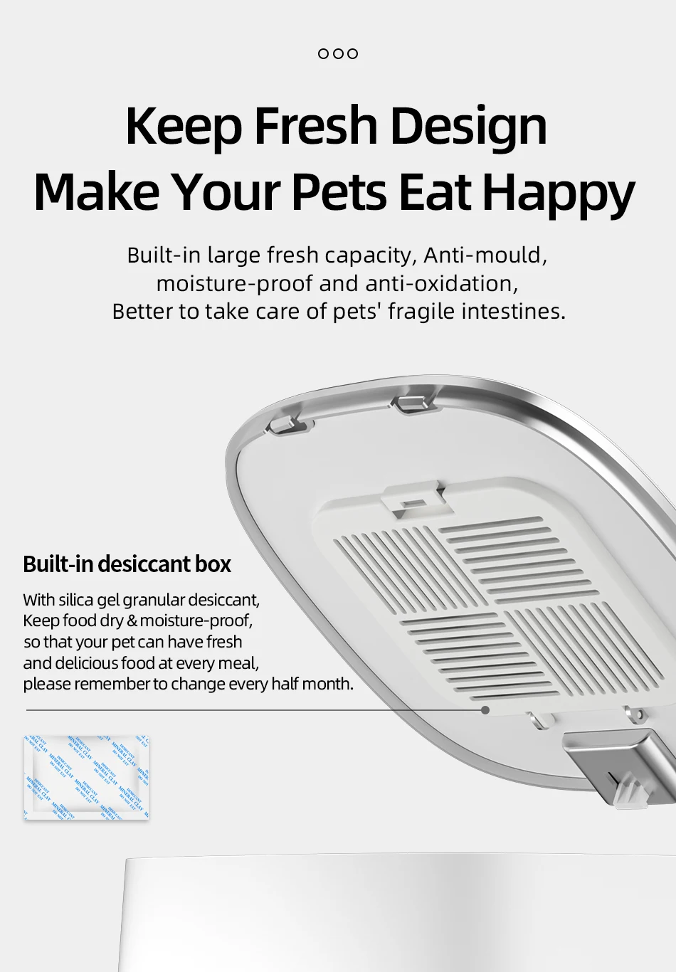 Our 4L auto cat feeder, which can feed your pet for about 2-3 weeks, suitable for small to medium sized pets. No longer have to worry about early morning, working overtime, traveling and working without feeding.