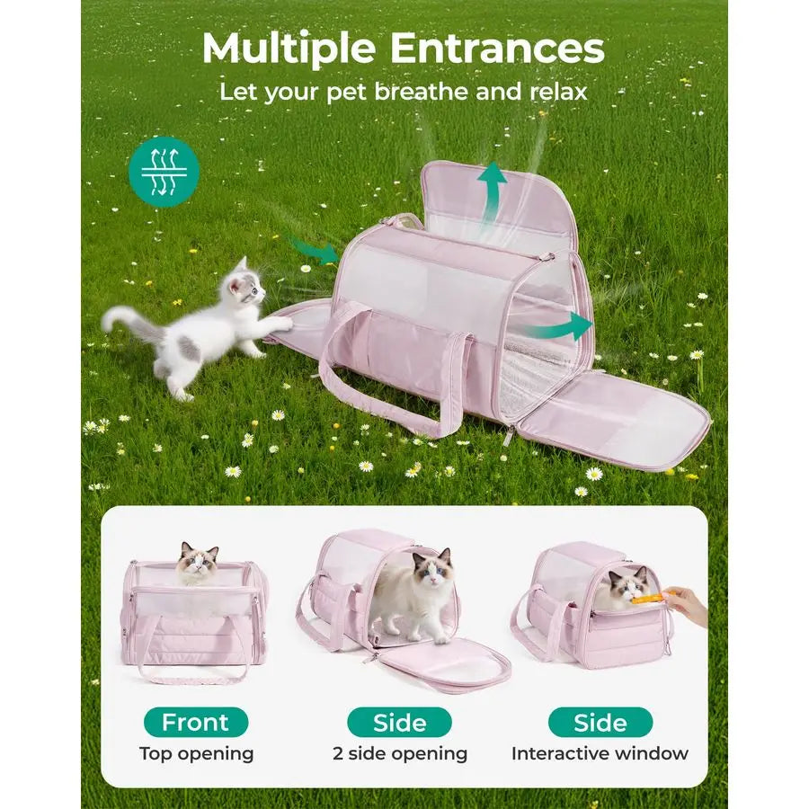 Cat Carrier SoftSided Pet Carrier for Small Medium Cats Dogs Puppy Quilted Collapsible Puffy Travel Bag Up to 20 Lbs Pink