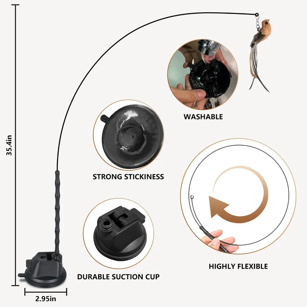 - 【Multiple game options】This interactive feathered bird cat toy stick is equipped with suction cup spring wires, which can mimic real prey. Its lifelike birds can stimulate cats' curiosity and provide endless entertainment. The sturdy design ensures that it can be attached to floors, kitchen countertops, refrigerators, glass windows, and even suspended or hand-held spring bars that can be installed on door frames. These diverse accessories can meet the different gaming preferences of cats, combining activity and entertainment.