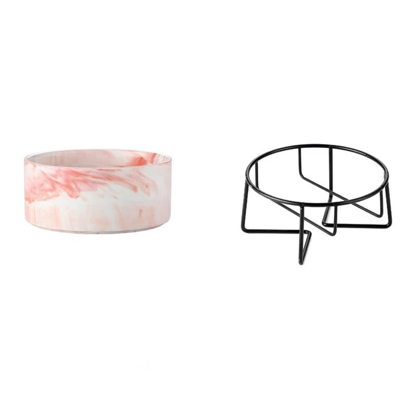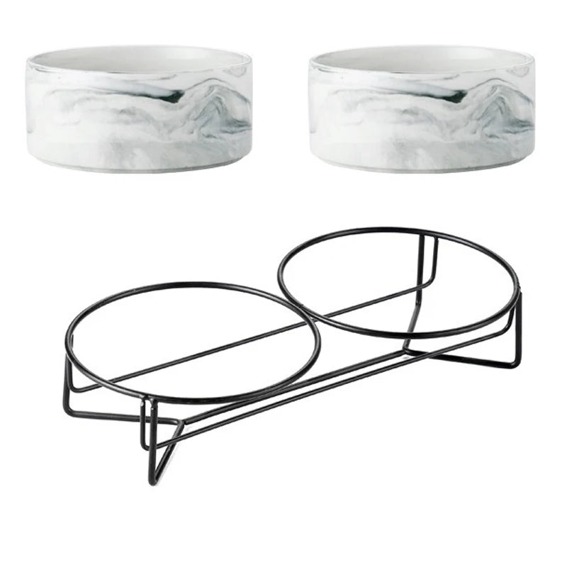 Ceramic Cat Bowl Double Marble Feeder for Dog Puppy with Raised Stand Non-Slip Feeding Food and Water Accessories Products #P021