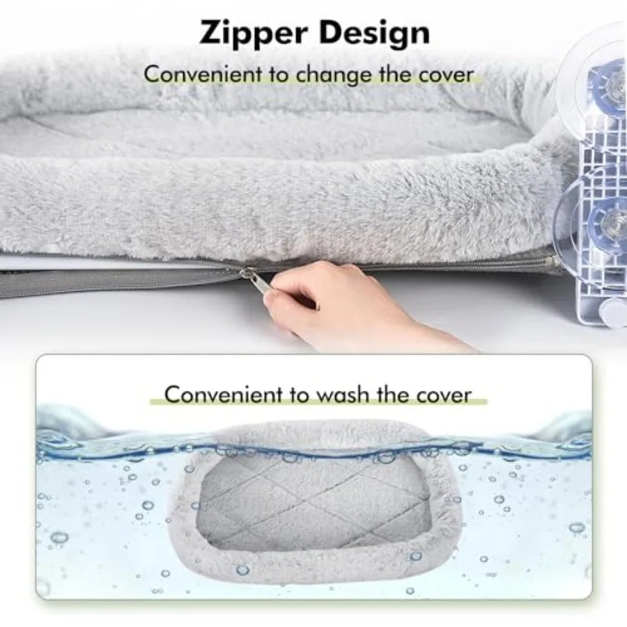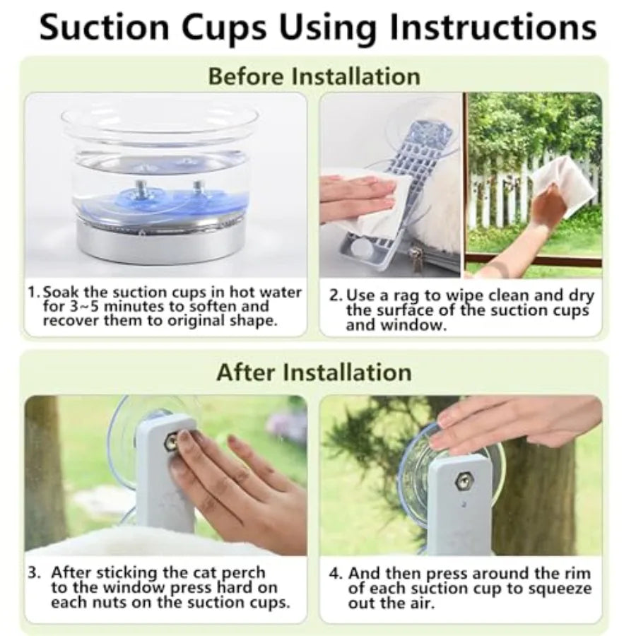 Cordless Cat Window Perch Cat Hammock for Wall with 4 Strong Suction Cups Solid Metal Frame and Two Replaceable Covers Foldable
