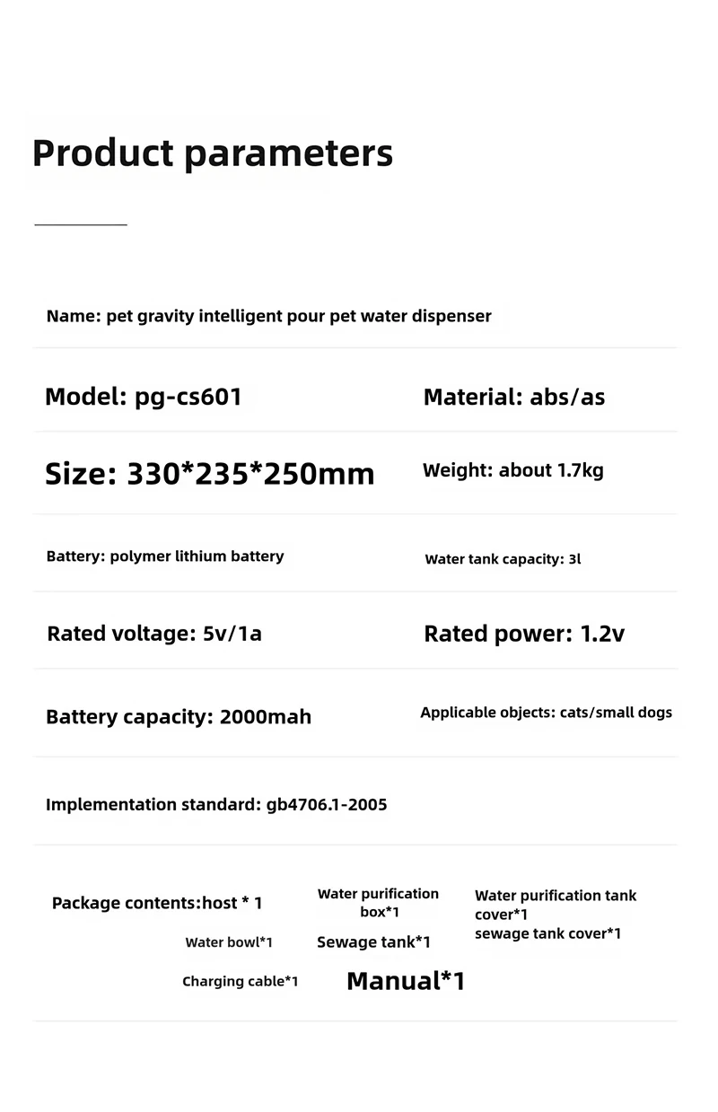 Rated power: 1.2V Dispenser cat water fountain