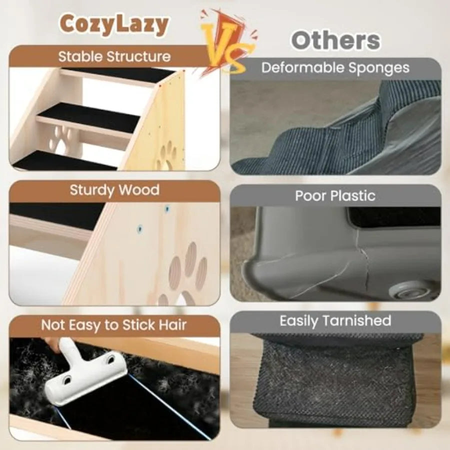 Dog Stairs Wooden 3Step Dog Ramp for Small Medium Large Older Cat Puppy Essentials Pet Step Ladder for High Bed Couch Car