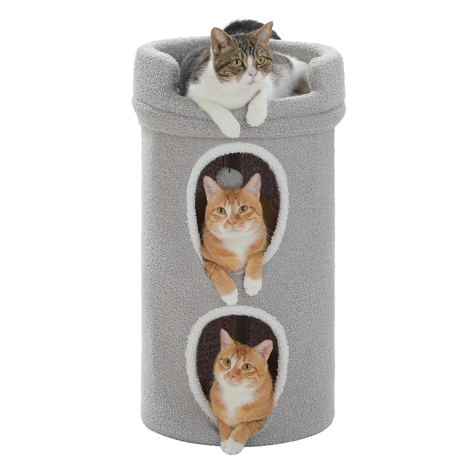 Double-Deck Cat House with Pompom Ball, Large Cat Condo, Cat Bed with Soft Flower Perch, Spacious Cozy Condo for Multi Cats
