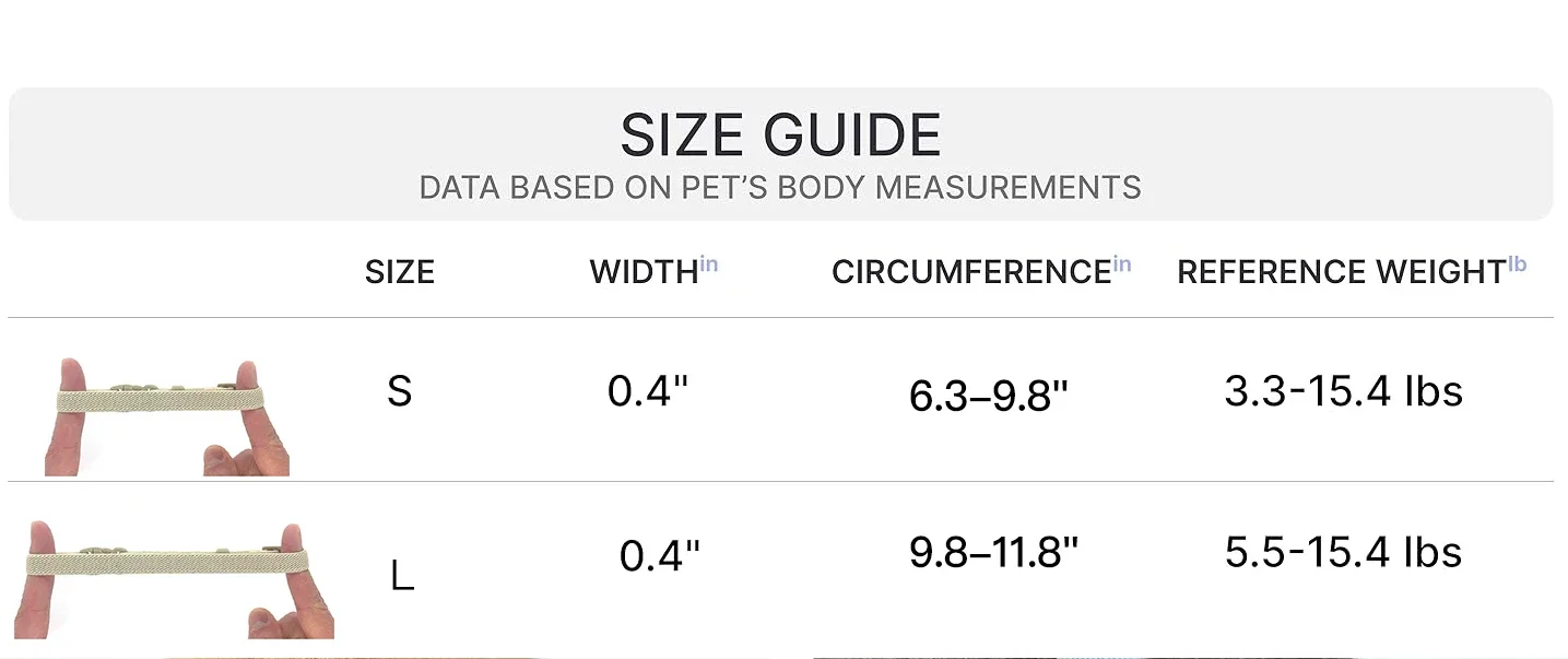 【Adjustable Fit】Size S:Suitable for all cats with an adjustable length of 6.6 - 9.8 inches and a slim 0.4-inch width, ensuring a perfect fit. Size L: Length:9.8 - 11.8 inches, width: 0.4 inches, weight: 6g. Suitable for all size kitten medium large cats and puppy