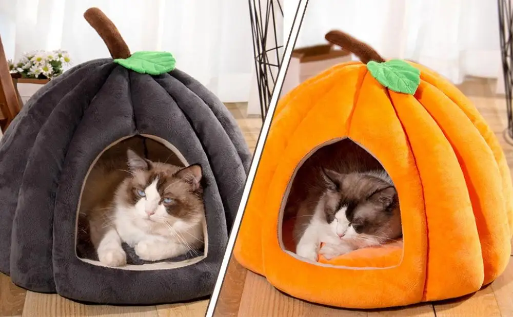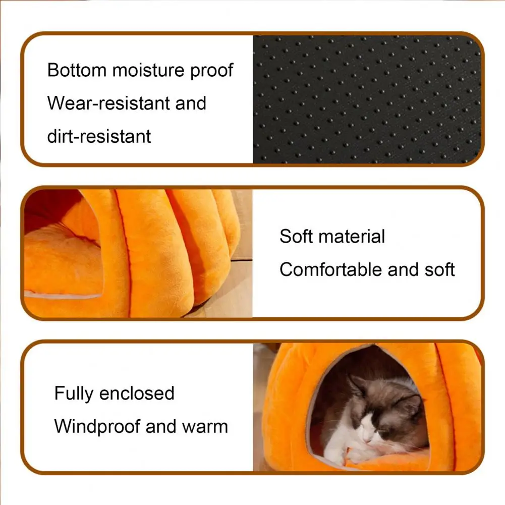 Semi-Enclosed Pet Bed for Cats All Seasons Comfort Stable Anti-Slip Pumpkin Pet Tent Cat House for Small Medium Dogs