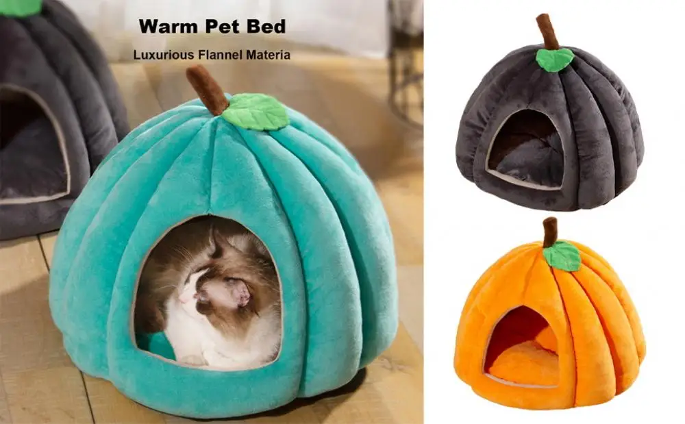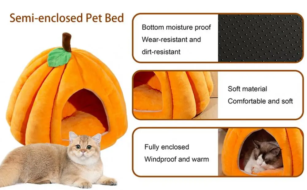 Semi-Enclosed Pet Bed Comfort Stable Anti-Slip Pumpkin Pet Tent Cat House Soft And Cozy Pet Bed For Small Medium Dogs Cats
