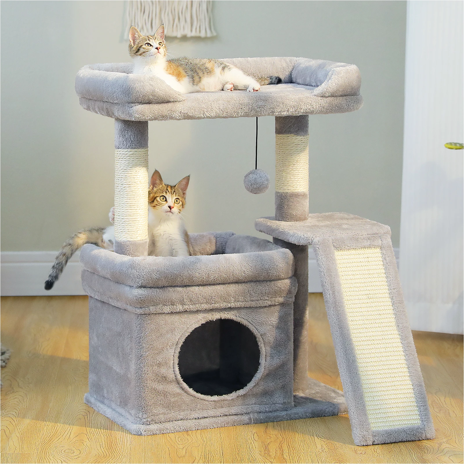 Easy to Install and Nice Looking: Its attractive look will match with any room in your house like a piece of nice pet furniture rather than a jungle gym. All the necessary tools are included, just following the instruction step by step. It's super easy to set it up.