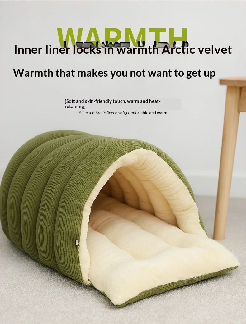 Winter Thermal Plush Cat Bed Winter Warm Enclosed House with Removable Washable Cover for Cats Small Pets Anxiety Relief
